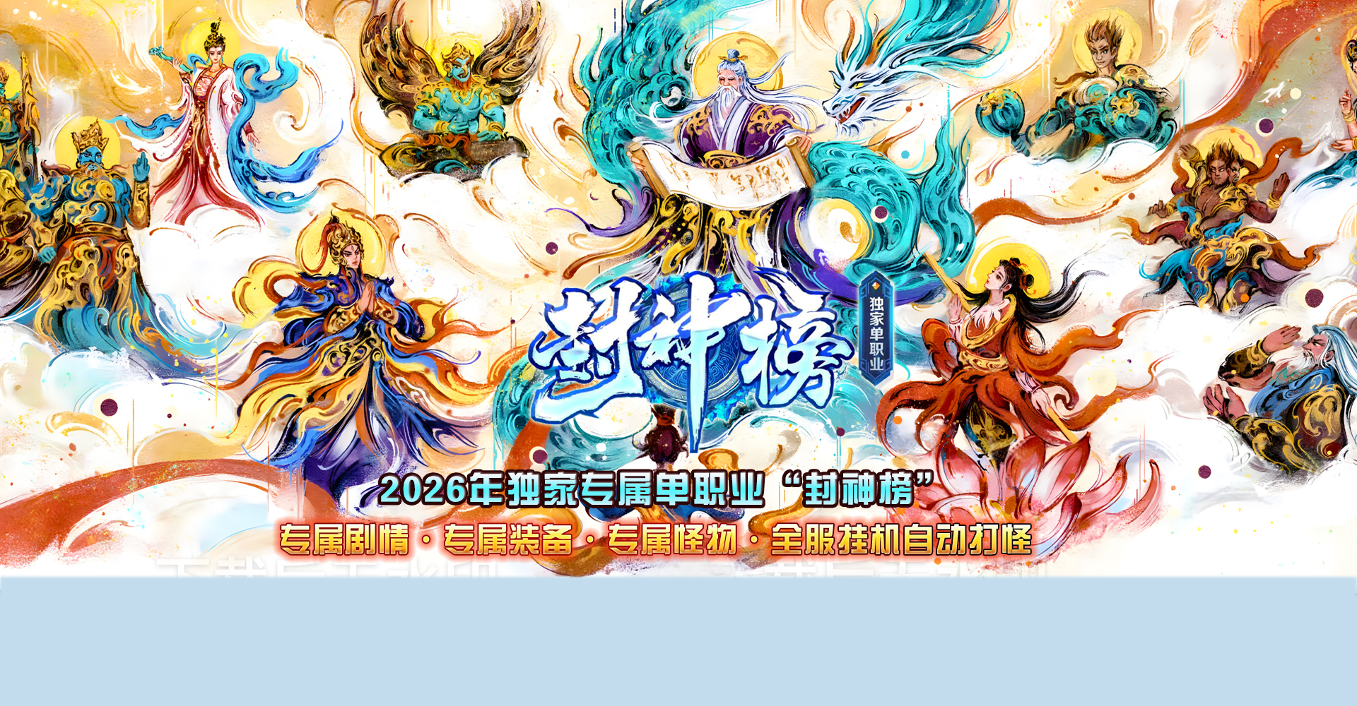 3、2026年跨年独家新版封神榜·专属剧情·专属装备·专属怪物·独特玩法·全服挂机!